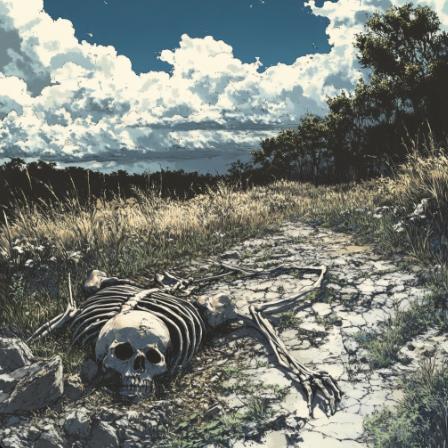 arkansas grassland bones and all final scene manga styleFor this, I was specifically looking for the color palette of the final scene in Bones and All where the characters sit on a grassland hill at dusk. It's a nice palette of purple and green. However, either Midjourney doesn't know about that movie or it was overidden by the semantic content of "bones and all" because nothing from that scene came through, only literal bones.