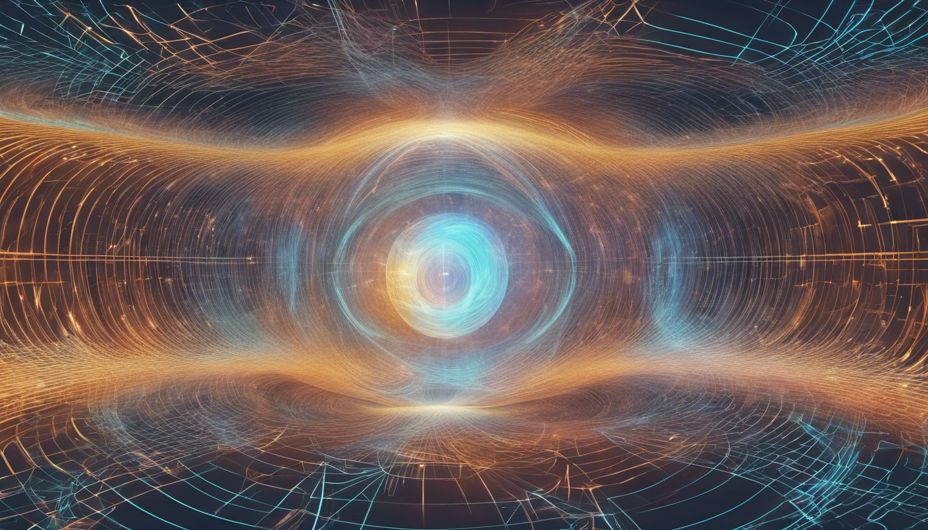 Operator Algebra, Holographic Duality, Quantum Field Theory, Emergence of Spacetime, in the style of futurism, proportion 16:9 1. To what degree does your text query influence the generated image?