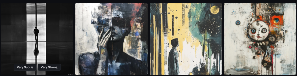 Whereas the first assignment was open-ended, in this assignment the intent is to explore variations but keeping the same or very similar text prompt. Create an image or video of your choice and do a number of variations of that image or video, keeping the same text prompt, or adding minor changes to the prompt re-ordering the sequence of words around to see to what degree the placement of a word has an efect. The intent is to see to what degree you can transform, stretch, turn inside out, change the meaning, etc. of the AI generated result meanwhile keeping some of its characteristics the same. Explore in greater detail MidJourney's two parameter settings, the negative "--no" parameter where you tell it what you dont want in the image, and the word weight prompt ith the colons as mentioned by Jazer: https://docs.midjourney.com/docs/multi-prompts