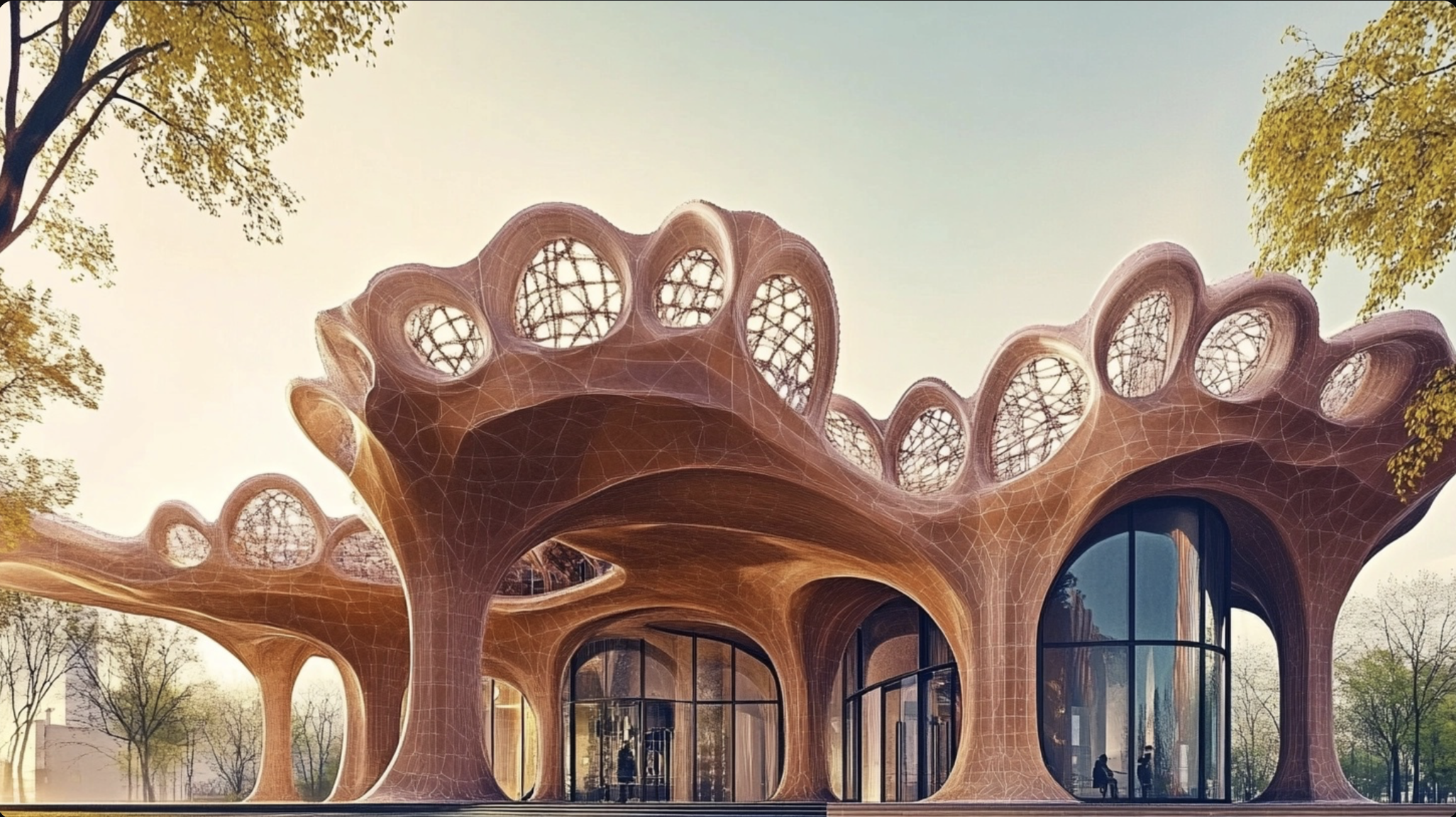 Prompt 3: "Imagine Contemporary architecture inspired by Antonio Gaudi, hyperrealism, hyperrealistic, photorealistic, daylight, colorful, --no interior"
