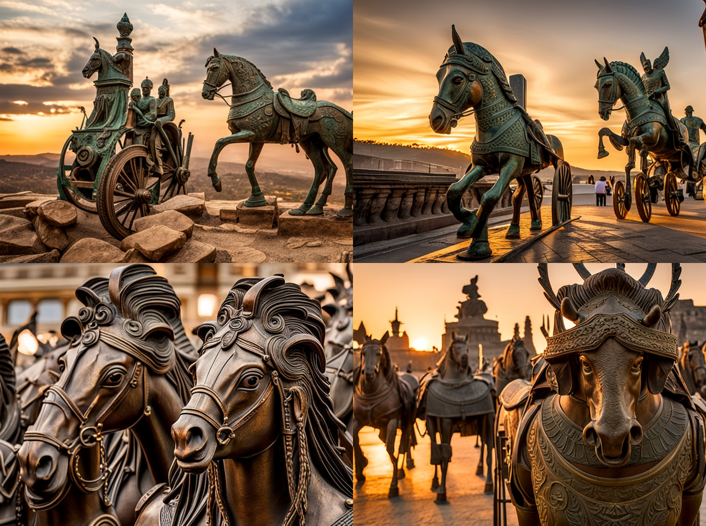 I found these images really compelling; they reminded me a bit of Francis Bacon and I found the compositional aspects of the bottom two to feel quite unique for AI images with the panels within the frames. The bottom-right image looked almost like celluloid film strips. I decided to put the screenshot of all four images into the image-to-text program, because I felt like having a very busy and chaotic composition might allow for more complex prompts and lengthen the lifespan of this loop. The description I got was: