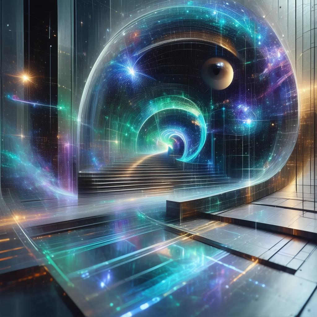 MJ generates more realistic and immersive visuals, especially when architectural elements (like Escher-inspired "infinite stairs") are included in the prompt. For example, with "an infinite series of times," MJ renders visualizations like sprawling staircases or physically plausible labyrinthine spaces, giving a sense of scale and materiality. MJ often translates abstract concepts (e.g., "web of time") into more literal architectural metaphors, like infinite staircases or interconnected structures, making it feel grounded in physical space while still surreal.