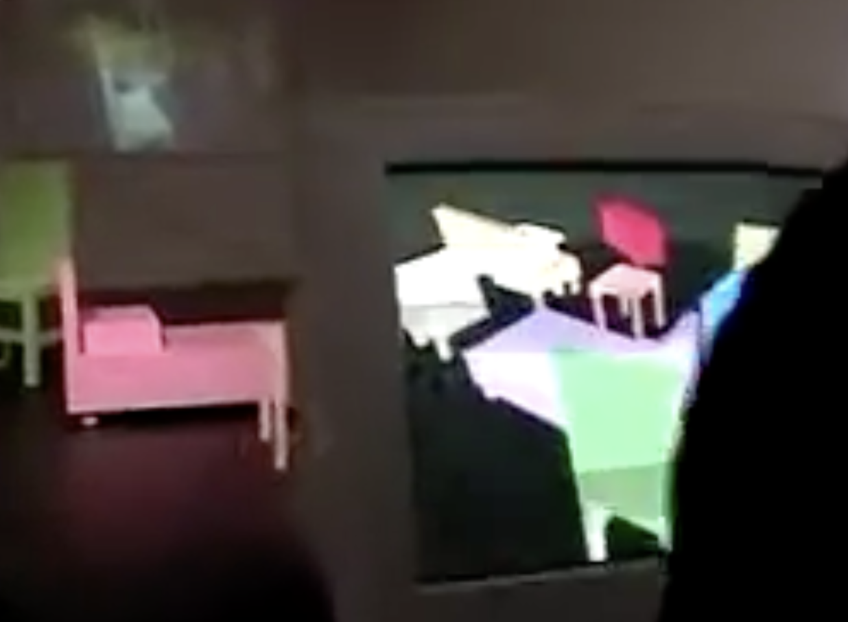 Systems Maintenance is also an example of this. In this piece, gallery participants manipulate the arrangement of furniture in a room. Participants are both inside the room and looking down upon it, so that the projection itself becomes another world. I would argue that it being able to inhabit a space, view it from above, and interface with elements expands human perspective. Systems Maintenance transcends traditional spatial limitations. However, viewers are privy to the additional "rules" that govern the space. For example, which version of the room you are looking at is uncertain until interaction occurs.