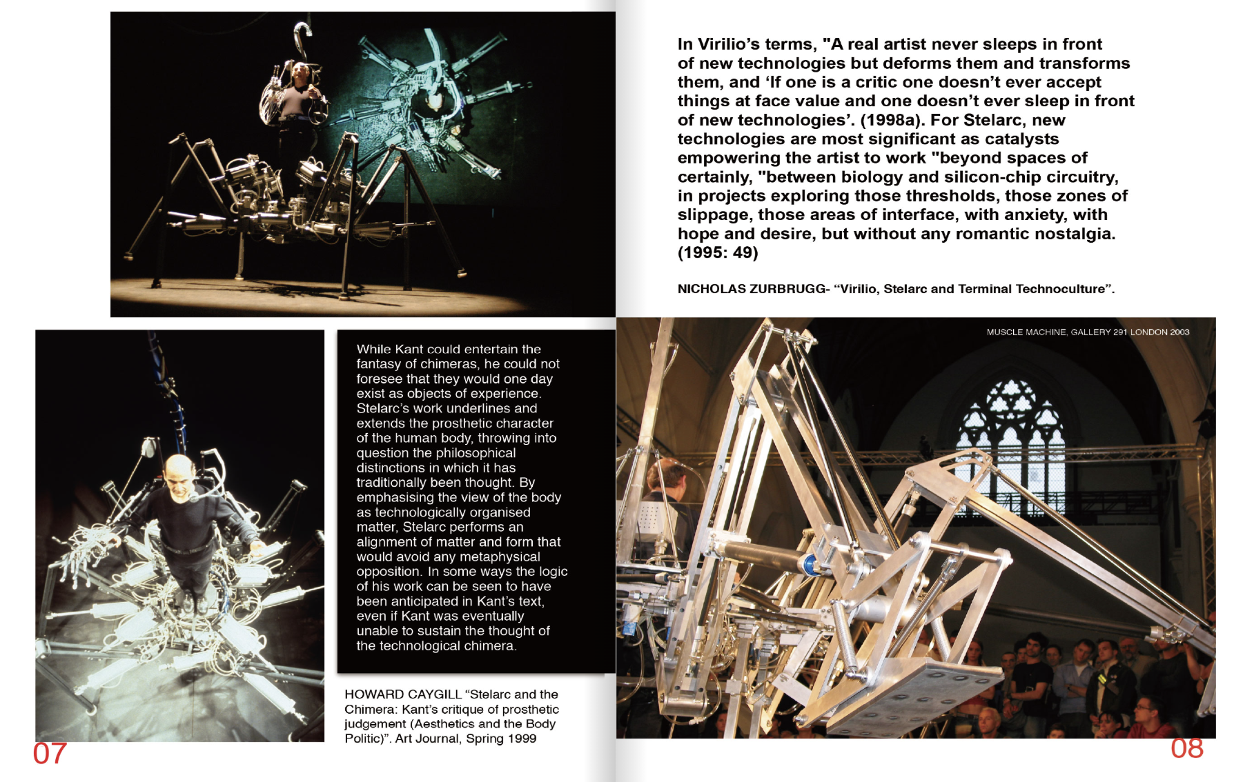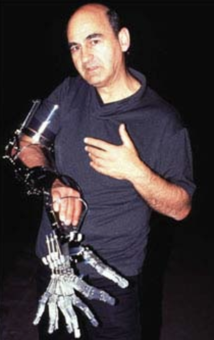 Stelarc uses robotics in a very creative, or even a creepy way as his style artistic expression. He explored the new possibility of how humans or an alien like human could be like by using robotic as an extent of human body.