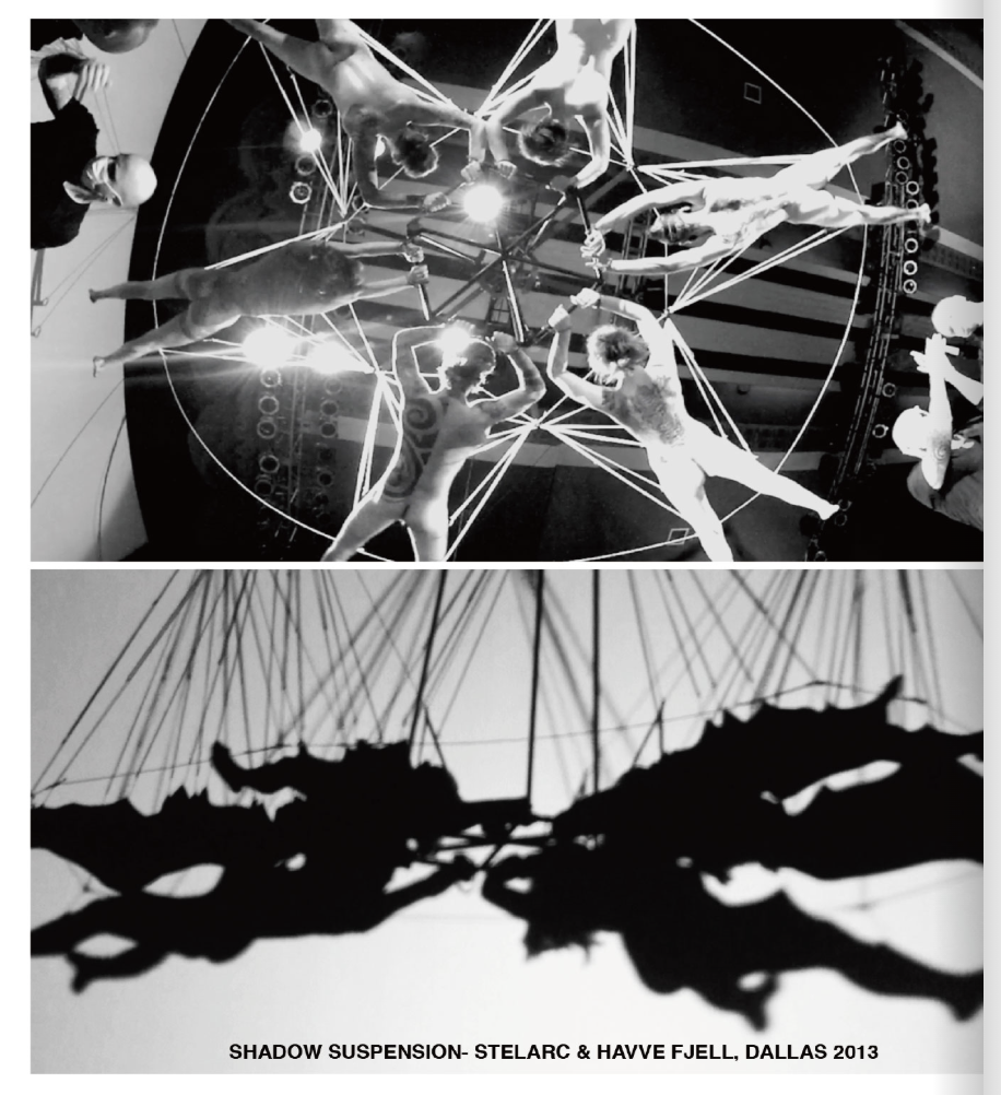 An early work Third Hand is a more intuitively way of using robots as the extension of the body. By a simple idea of adding one more joint to one side of the arm and the performance, the work visualized and explored the evolution of our relation to technology. As technologies like internet become part of our daily necessities, even invisibly, we are already becoming human with a third hand. In Exoskelton, Stelarc combined a spider-like walking method and audaciously created this mechanical chimera of people and a 6-legged creature with walking, turning, squatting and lifting behaviors. This work ended up with surprisingly shocking even with simple idea and showed how robots owns a aesthetic of its own. In the later work Shadow suspension, the chimera is now a group of 6 people together with hanging mechanics. This work not only inherited the theme of suspension of Stelarc’s work but also reflects how combining human and mechanics can show the object side of the most lively and familiar creature. The way 6 people as a group turning into a still sculptural like object is deeply thrilling. Alan Rath