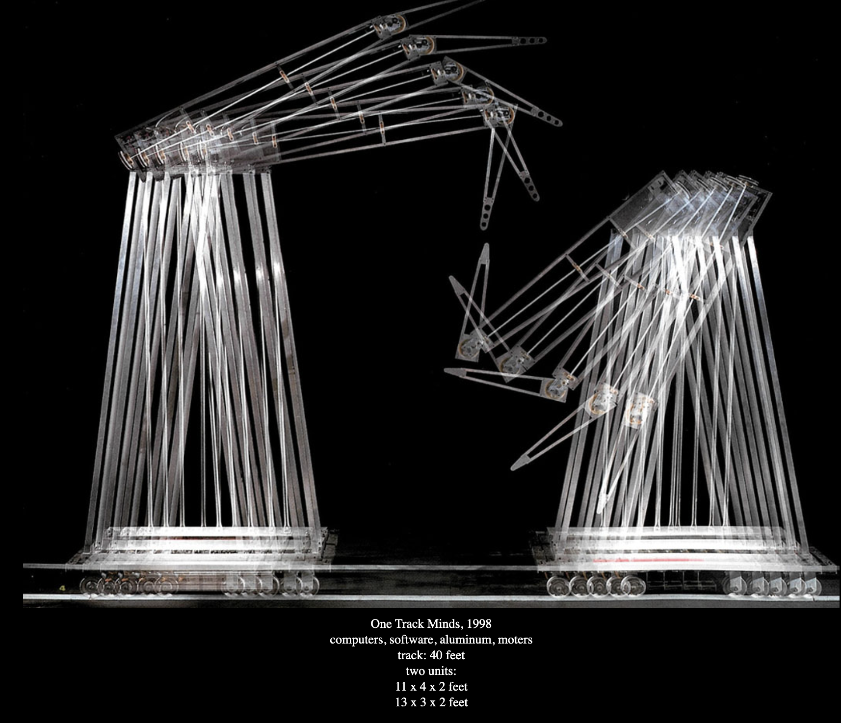 Alan Rath’s, in another approach, explored robots with human characteristics, in other words using human as the extension of robots.