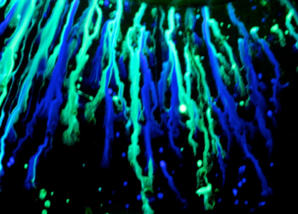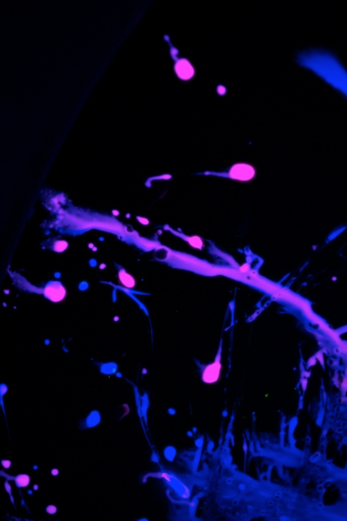 I explored time in the sense of long exposure (about 10-15 seconds) and depth/space by pulling focus in and out of an abstract scene. The images were created with the liquid interiors of blue and green glowsticks, slowly poured down the side of a toilet bowl. The long exposure captures the dripping material as bubbles move towards the center of the bowl. I also played with Actions again because I now find this to be an invaluable tool for photo editing.