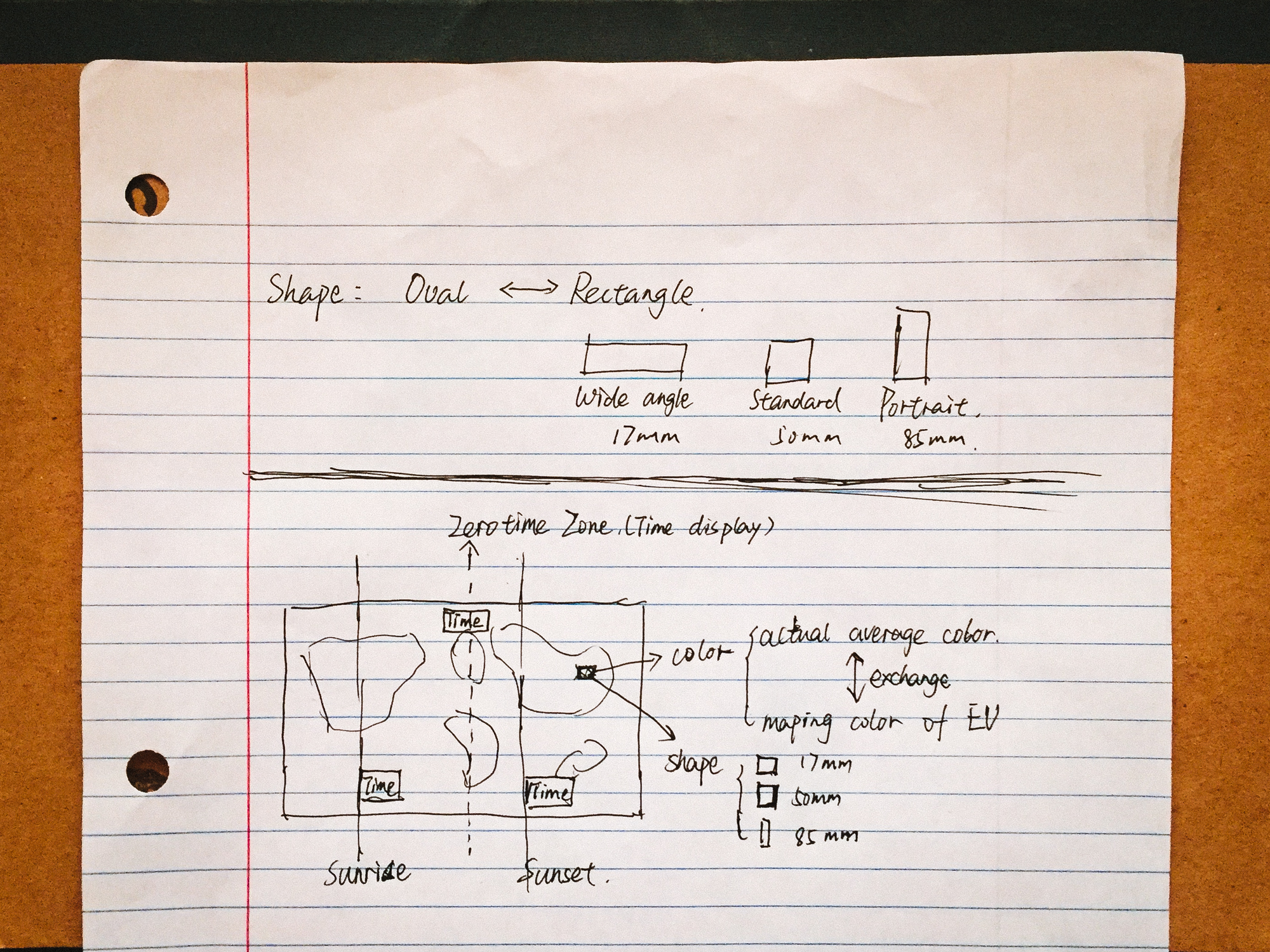As shown in the sketch 2, the width-height ration of each rectangle cell is decided by focal length. Images with focal length less than 50 mm is presented as 1:1 ration, i.e. square; images with less than 50 mm will be presented as landscape-direction rectangles; images with more than 50 mm will be presented as portrait-direction rectangles.