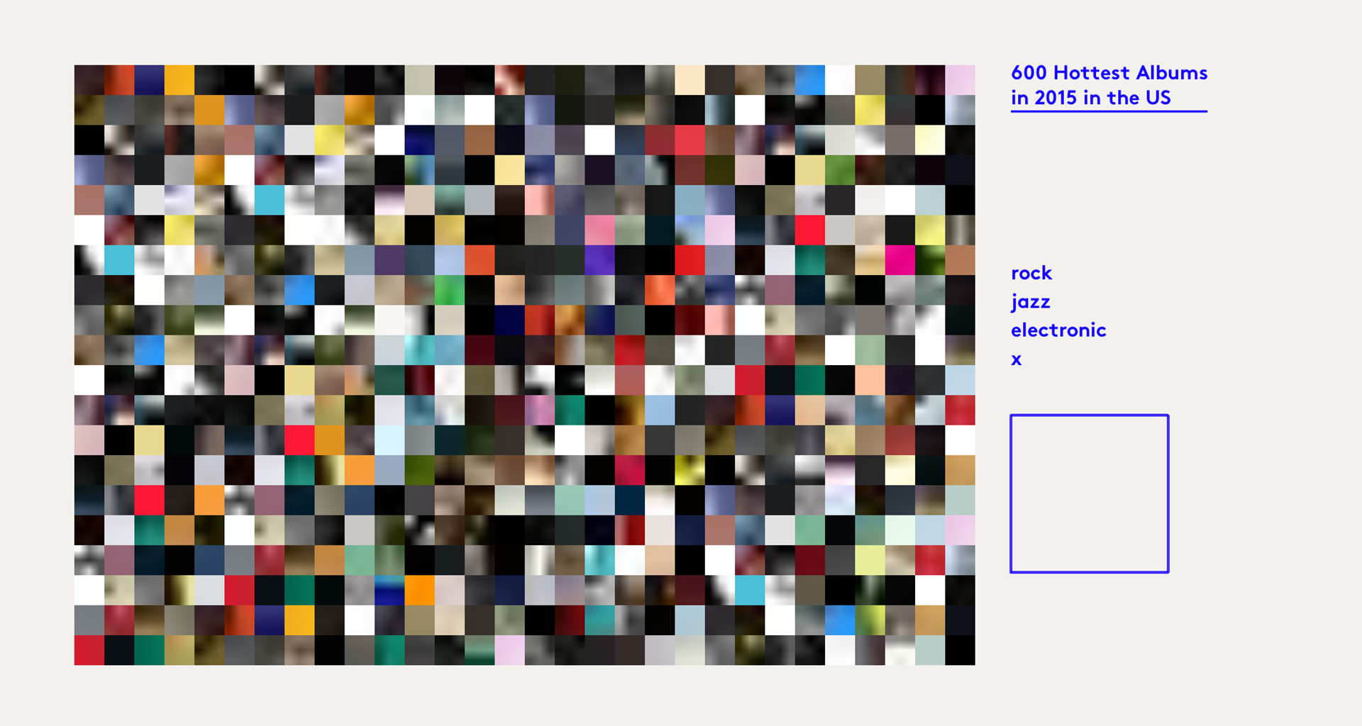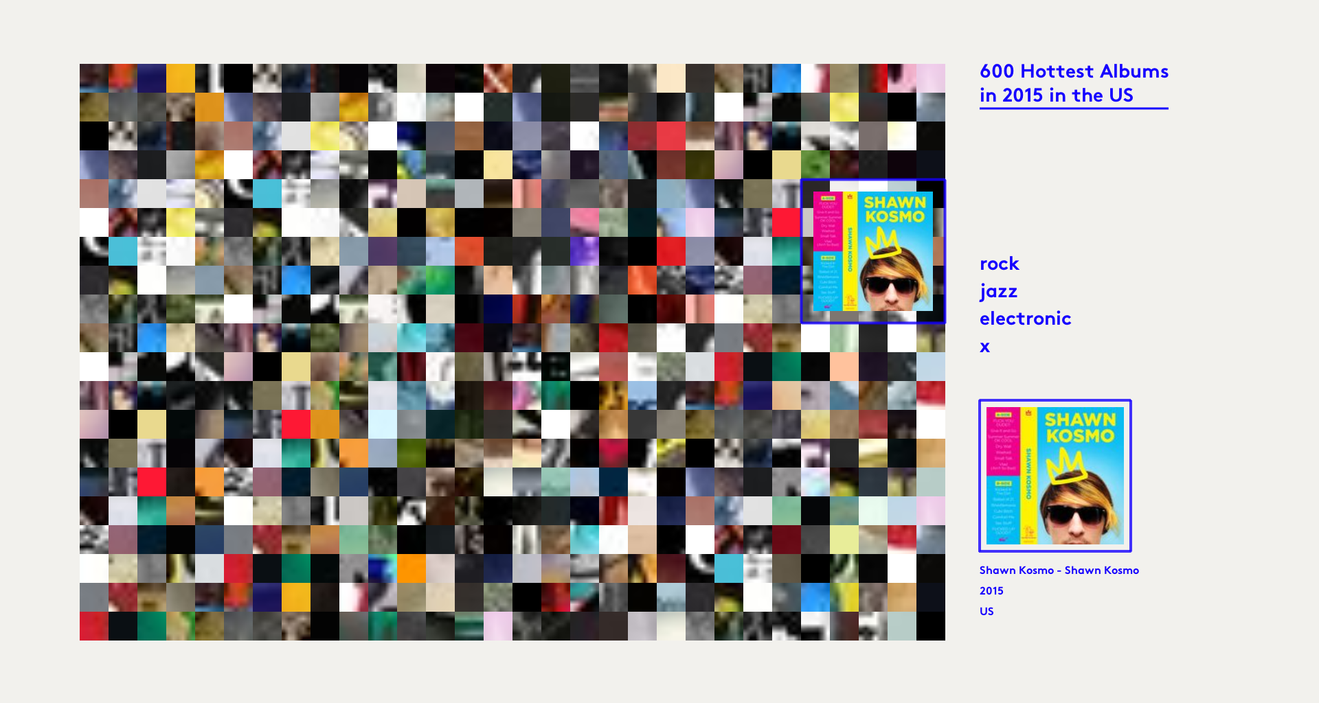 Sketches I was inspired by this kind of effect. I am thinking to make each photo a low-transparency color shape, which could be ellipse, rectangle or polygon, and make photos overlap together but not completely covered by others.