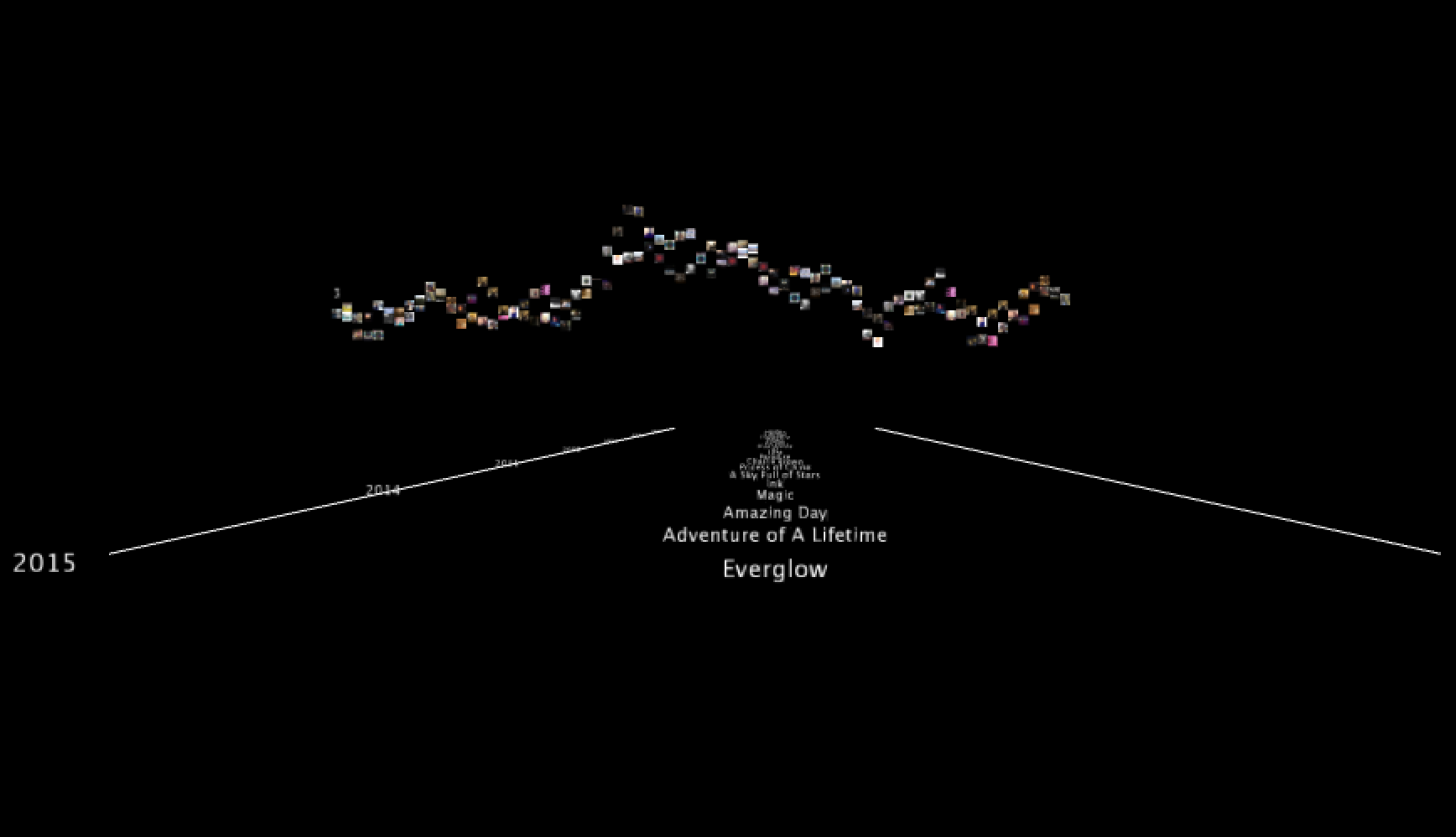 Every circle represents a singer. The line means these two artists have some connections. Clicking the circle, you can see the detail info about this singer. The popularity of his/her/their every album, every track. And the comparion of popularity of each song in Instagram and Spotify.