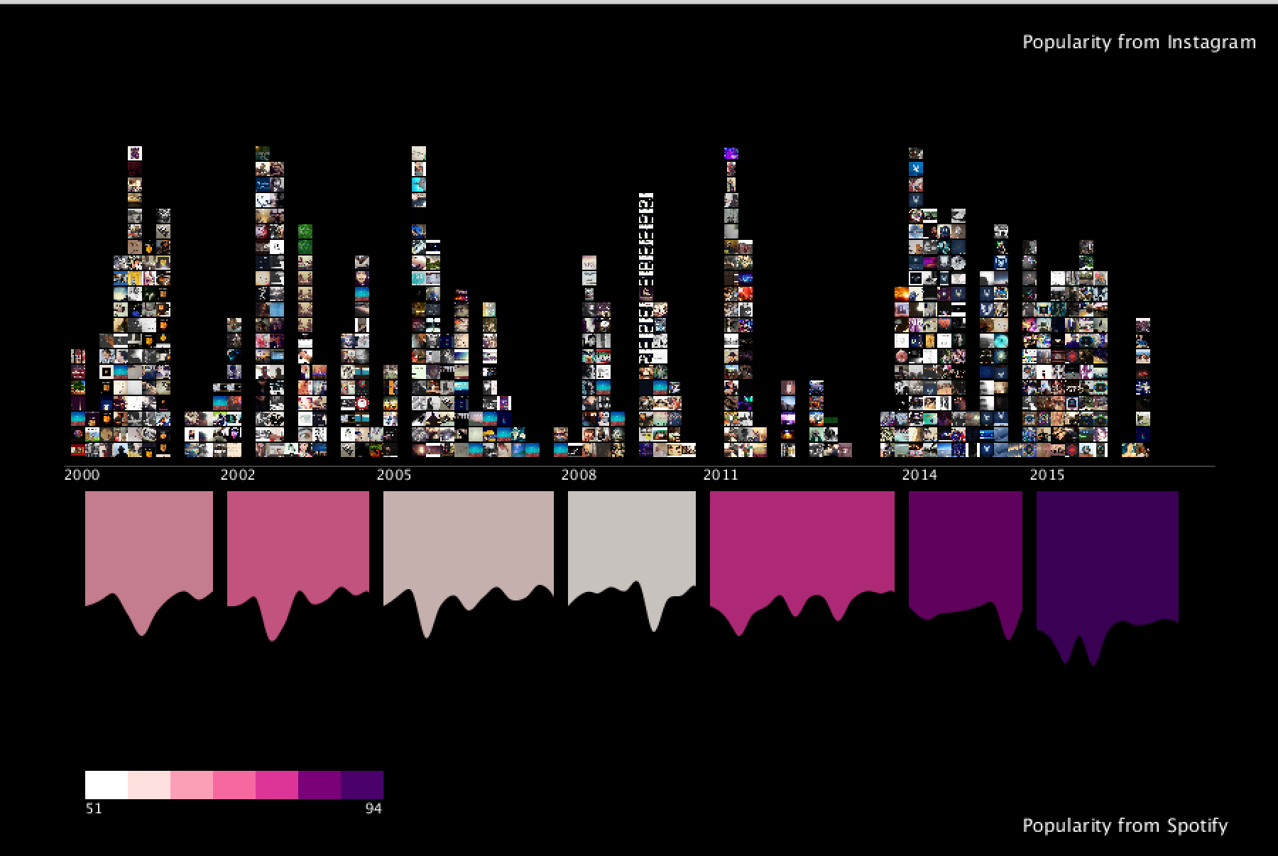 For example, the popularity of a singer not only could be revealed from music website, but also picture website. I tried to find the connections between these singers and did comparison of the popularity of their arts works in different types social medias(Instagram and Spotify).