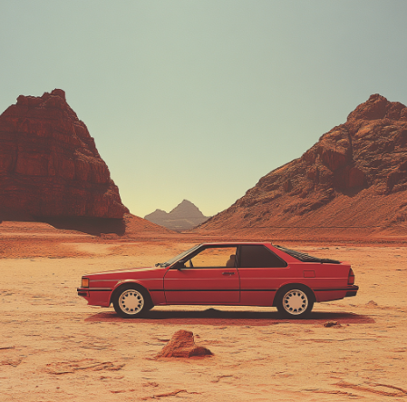 Citroën grace jones audi quattro mars red car in distant background gritty 1980s styleI found a huge variation when trying to make specific images of a car -- I originally was trying to generate images of the Audi Quattro, but found that there was very limited variation with what was generated.