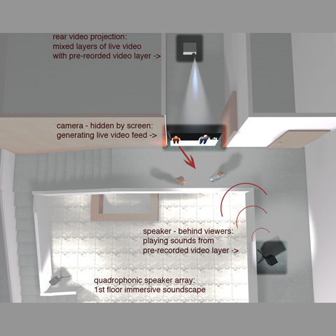 "I'm particularly interested in exploring the topology or modality of communication between public and private spaces," said Ashok. "In this case the viewer's actions are affecting the interior of a large building from the street. You are entering it and impacting it optically and electronically, and its properties are leaking back to you, coming to find you and affecting you. It's almost like a gaming environment in some ways: it creates a certain sense of excitement as you point a device at something, target something very precisely. But there's also a sense of transgression—a feeling that you're invading a private space. It questions the boundaries of ownership, permissions, and at one level property itself."