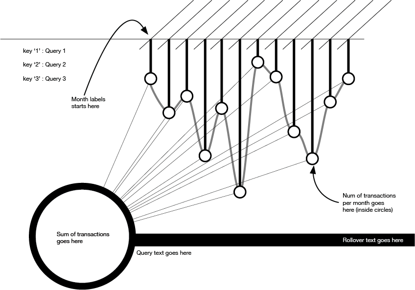 Post here your 2D bivariate spatial visualization concept and sketch. The project should map 2 or more SQL fields (such as itemtype, date, collcode, etc.) data into a 2D space map. The project should have some basic interactivity such as controlling when labels or other information can be visible or not.