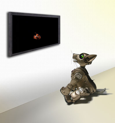 2.Cyberdoll is by far an interesting ensemble of robotic art pieces that dwindle between the notion of human and robotic emotions. within the art works we see robots performing task that have little to no value but rather are more for the personal and self entertainment. in one image we see a robotic cat watching a digital fish swim, either to represent its realistic emotions or to represent a notion of wanting to simply enjoy entertainment, ether way its representing realistic emotions. Another, perhaps a bit more interesting peice is that of the puzzle peices. the works show how similar the human body and robotics work. Overall the works remind us that humans designed technology to function just like we do, better in some aspects but not in others.