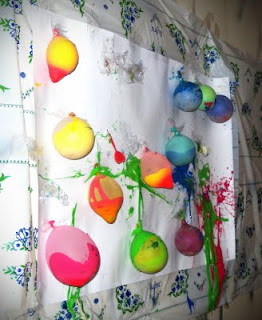 My example is a picture of a simple and creative activity anyone can do for fun. Balloons with different water color paint in them are spread across a canvas and all one needs to do is throw darts at them to pop. With this, different colors will splash all over their place and create a different piece every time. No one artwork will look like another one. Like Aaron, this piece of art can never be specifically planned and no one will know how the colors will all turn out.