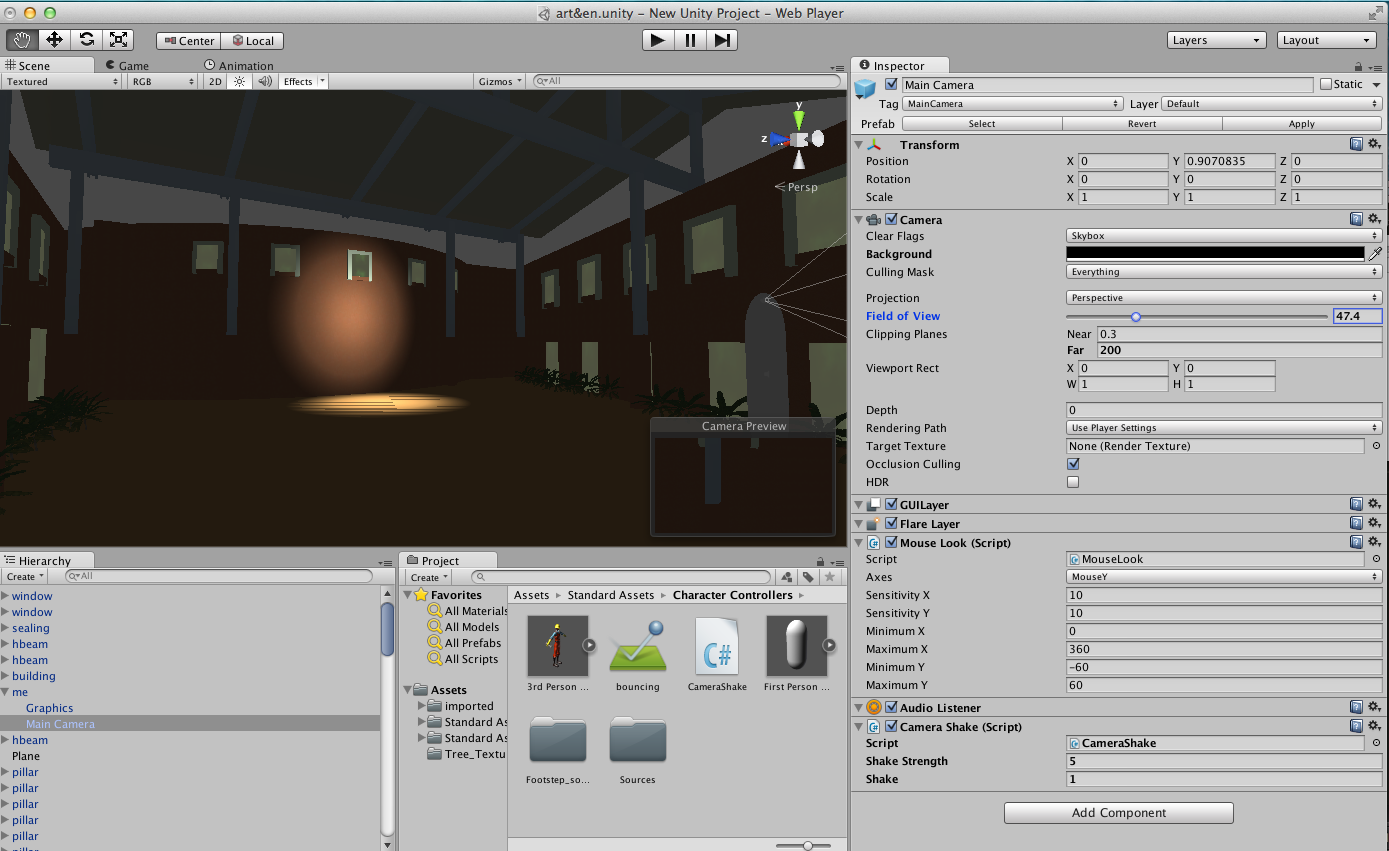 To find out the change in the space after installation, I made this simple simulation with the Unity program. It is true that there exists a huge gap between the game view and the courtyard in the real world. But this was helpful to get an idea how much light is needed to give some kind of change(effect) to the place.