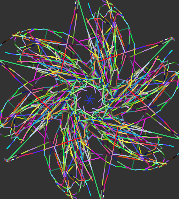The space is divided into 6 portions of 60 degrees each . In each of this division we see the reflections and symmetrical sketch of what the user sketches out emerging as time passes and as the user interacts.