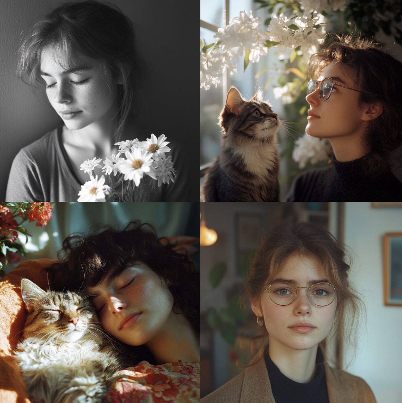 "Abstract" Portraits: wim wenders-style 35mm film photograph 24 year old feminine student who is idealistic sarcastic anxious frenetic and creative and loves cats and the smell of gardenia flowers --style raw --s 250 (RATING: 2/5)
