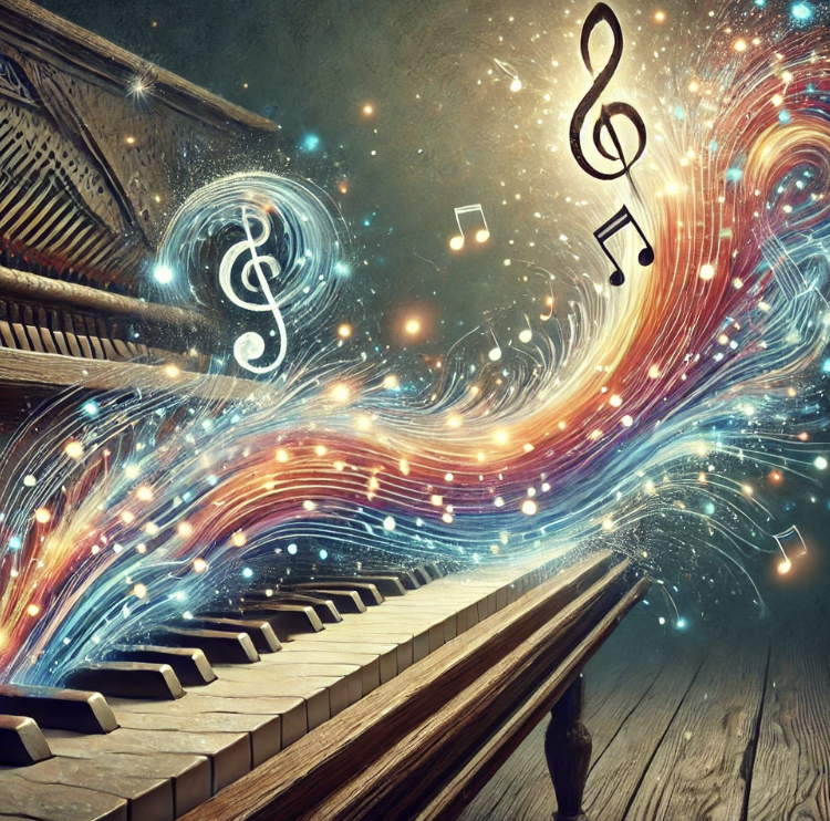 The generated picture prioritized the flow of notes over the piano since the flow occupied almost 75% of the picture, which, is reasonable since the prompt has implicitly emphasized that as the major element in the picture.